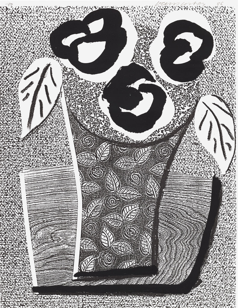 David Hockney "Three Black Flowers, May 1986". A homemade print executed on a office colour copy machine, 1986, on Arches paper. Limited edition of 50. Blind stamped by the artist.